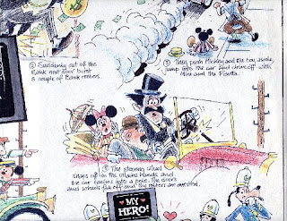 "This is the rough style I did the animation lay-outs in take and which was neat because the great Disney animators Glen Keane and Dan Haskin would make all of my scribbles very legit, bring them back on model and keep the Disney studios happy campers. The animators were followed by excellent (and big Disney fans) assistant animators Eddy Klein and Mike Baez at K.C.M.P. studios in NYC. At the directorial helm was always the one and only Phil Kimmelman."